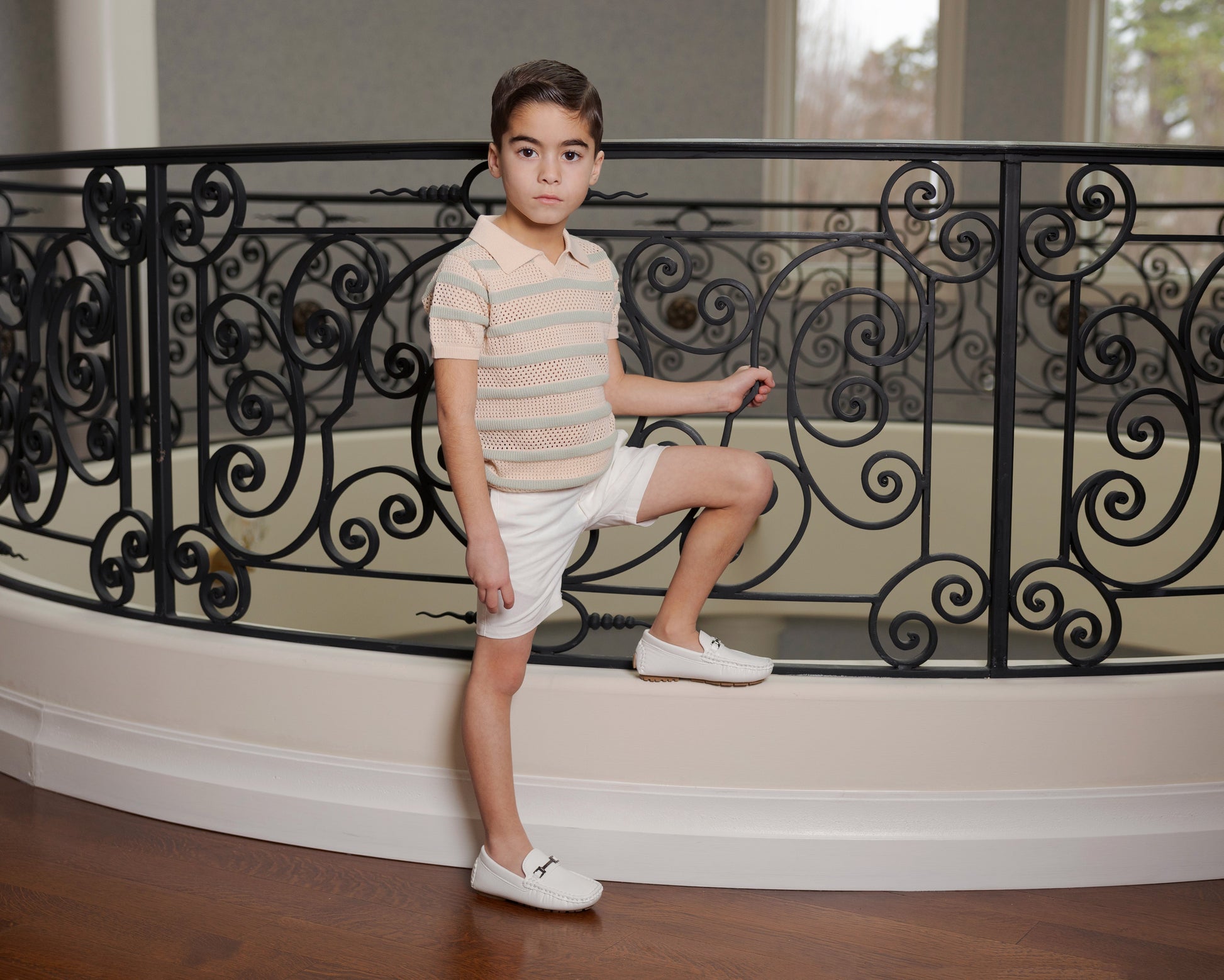 Pointelle Striped Short Sleeve Sweater